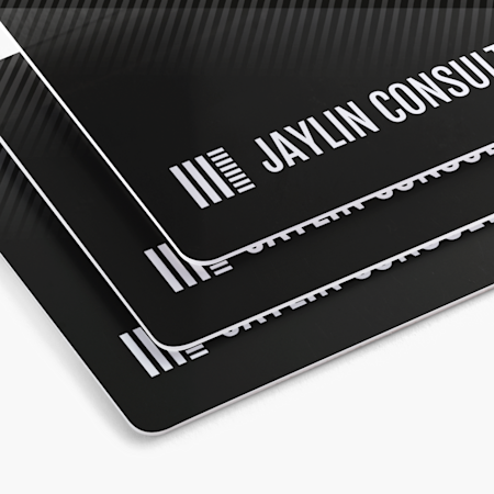 While bright colours work best for plastic business cards, you’re not limited in what you can design. You could even use all white (no printing) or black on your plastic business cards.