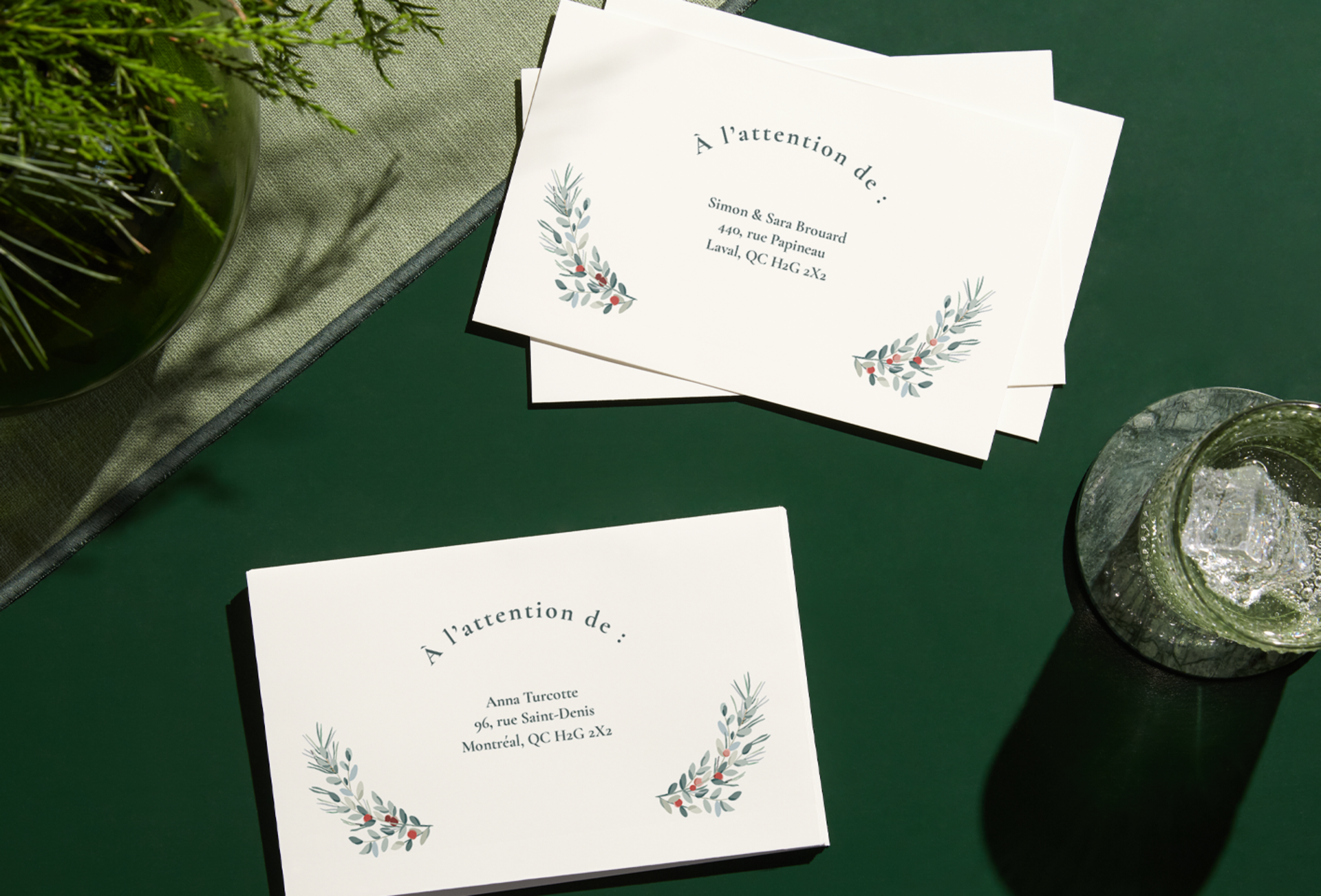 Après tout, personne n’a vraiment envie d’adresser toutes ces enveloppes à la main. C’est pourquoi nous les imprimons pour vous. Sans frais.