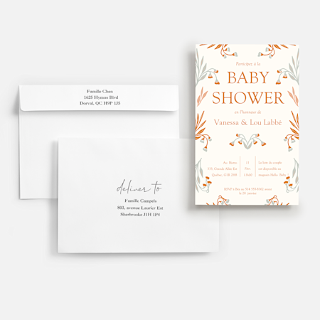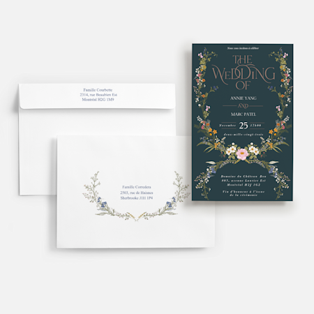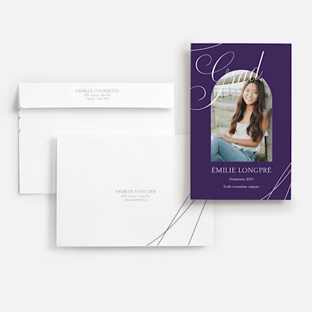 Créer des enveloppes pré-adressées est simple. Sélectionnez votre type d’enveloppe après avoir créé vos cartes. Vous pouvez choisir nos enveloppes personnalisées assorties ou explorer nos autres options d’enveloppes. Décidez ensuite si vous souhaitez imprimer des enveloppes avec des adresses de retour, des adresses de destinataire ou les deux. Ensuite, ajoutez toutes vos adresses une par une. Une fois que vous aurez terminé, nous vérifierons vos adresses et les analyserons pour détecter d’éventuelles erreurs. Si tout semble parfait, cliquez sur « Ajouter au panier » et finalisez votre commande. Vous pouvez suivre ce même processus pour adresser des faire-part de mariage, des cartes de souhaits, des faire-part de remise de diplôme et plus.