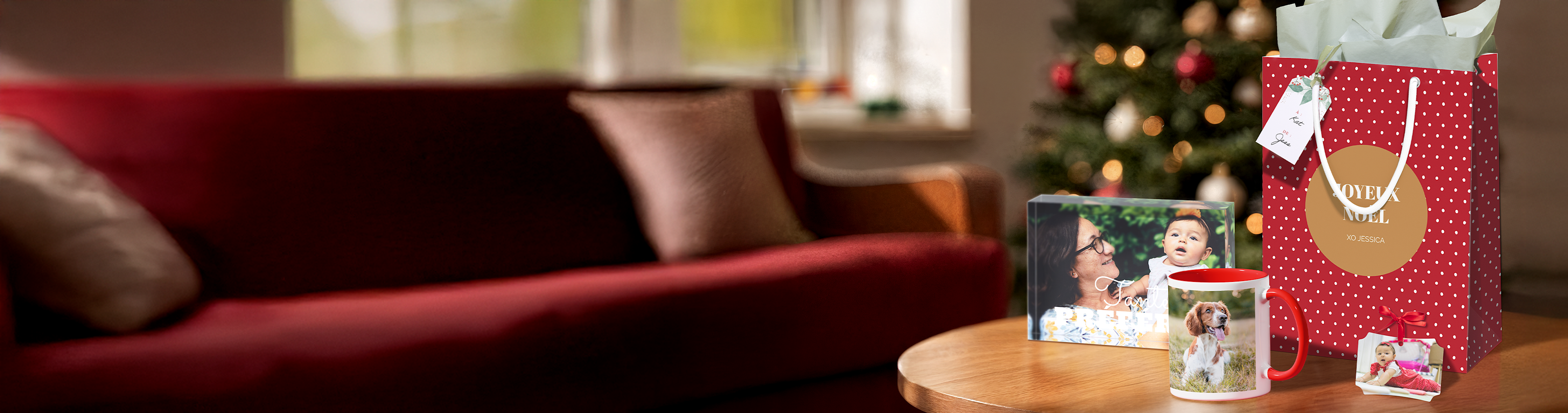 Bien que tous nos cadeaux photo personnalisés soient d’excellents choix, les livres photo, les impressions sur toile et les tasses personnalisées sont dans la liste des favoris de nos clients. Les décorations de Noël personnalisées et les couvertures sont aussi d’excellentes options pour le temps des Fêtes.
