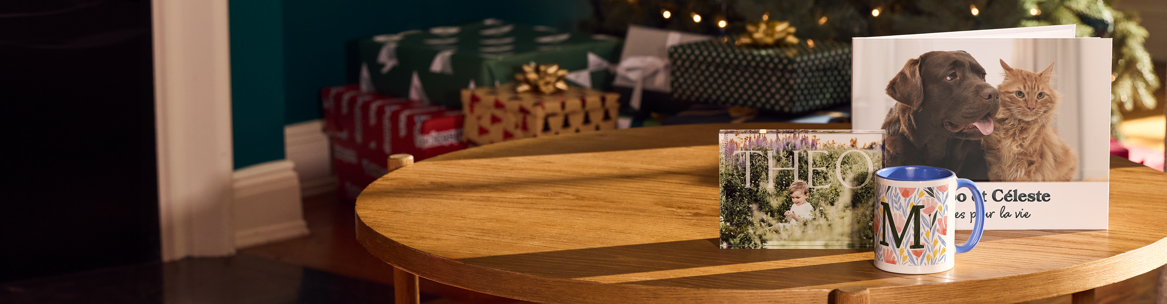 Si vous êtes à la recherche de cadeaux à bas prix pour Noël, nous en proposons un large choix. Pour commencer, jetez un coup d’œil aux cadeaux à 20 $ et moins de notre guide. Cette catégorie rassemble de nombreux articles de qualité dont vous pouvez accentuer l’originalité en ajoutant votre touche personnelle. Regardez aussi du côté de nos petits calendriers muraux! Ils sont pratiques et contiennent 12 mois de photos. Il s’agit d’un de nos cadeaux de Noël les plus populaires. Nos tasses classiques en céramique à prix abordable sont aussi un excellent choix. Vous pouvez ajouter la photo ou le texte que vous souhaitez. Vous ne risquez pas de vous tromper, car tout le monde aime déguster une bonne boisson chaude. Et n’oublions pas nos sacs fourre-tout. Ces sacs classiques sont indispensables pour les journées chargées et le magasinage des fins de semaine. En plus, vous pouvez les personnaliser selon le style et le caractère des gens à qui vous comptez l’offrir.