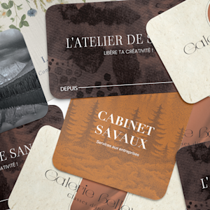 Les cartes d’affaires aux coins arrondis offrent un style qui ne passe pas inaperçu. Sans parler de la texture douce et lisse qu’elles ont lorsque vous les avez en main. Leur forme élégante et professionnelle attire l'attention, et donne à votre graphisme une touche unique et moderne. Le meilleur dans tout cela? Les coins arrondis sont moins susceptibles de se déformer que les coins à angle droit, ce qui permet à ces cartes de rester impeccables plus longtemps.