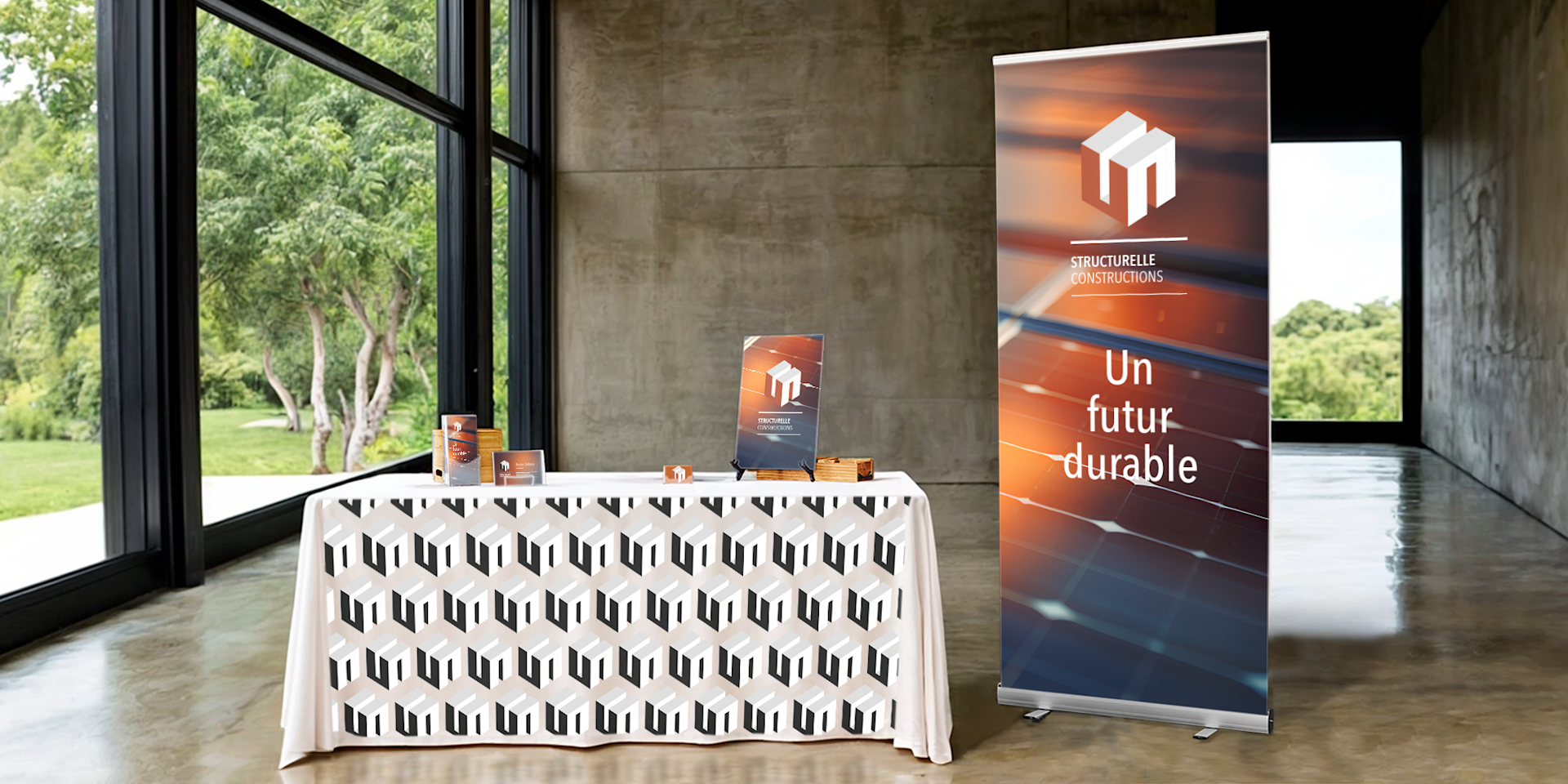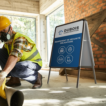 Parcourez notre sélection de produits d’affichage, vêtements et produit promotionnels pour vos journées de visite libre, vos chantiers et plus.