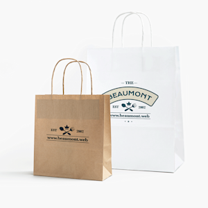 Disponibles en deux tailles et imprimés en couleur, nos sacs en papier kraft personnalisés sont idéaux pour toutes les occasions, y compris les fêtes, les anniversaires et les cadeaux publicitaires. Ils sont faciles à personnaliser, et vous avez le choix entre du papier kraft blanc ou marron. Faciles à transporter grâce à leurs poignées torsadées classiques, ces sacs offrent à votre image de marque et à votre logo la possibilité d’atteindre de nouveaux auditoires.