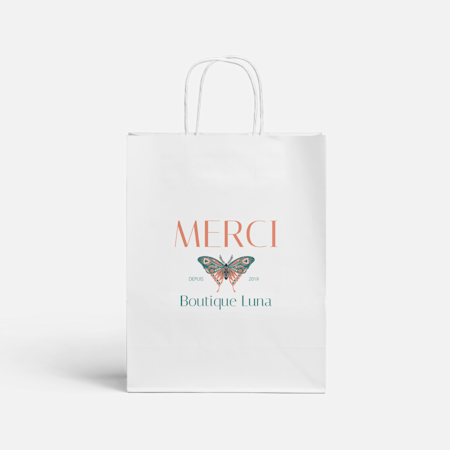 - Évitez les couleurs saturées et vives sur les sacs en papier kraft marron, car elles ne ressortent pas très bien. Si vous souhaitez utiliser des couleurs vives, nous vous conseillons d’opter pour le papier kraft blanc.