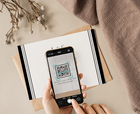 Une option numérique comportant un code QR imprimé sur votre faire-part de mariage, qui renvoie à votre site web de mariage. Avec cette option, votre site web peut abriter toute votre correspondance nuptiale – réponses en ligne, registres de cadeaux, détails de la réception, mot-clic de votre mariage, etc. Si vous faites ce choix, nous vous recommandons d’ajouter une carte « Réservez la date » (ou même l’un de nos aimants « Réservez la date » personnalisables) à envoyer avant votre faire-part. Les programmes et menus de mariage sont toujours bons à avoir aussi.