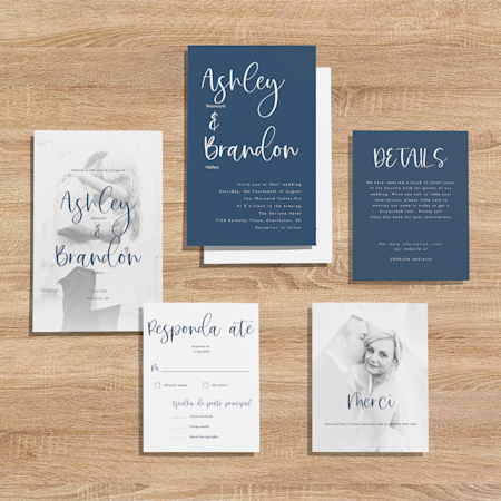 Notre collection a tous les éléments dont votre ensemble de faire-part a besoin : des faire-part, des cartes de réponse, des cartons d’accompagnement et des cartes de remerciement.
