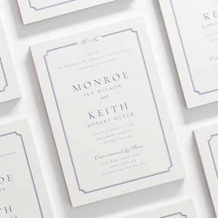 De plus, comme nous savons que le choix d’un ensemble d’invitations est une grande décision, nous proposons des échantillons de mariage gratuitement. Amusez-vous avec la qualité du papier et les finis de graphisme, puis découvrez-les en mains propres avant de prendre une décision. C’est la façon la plus facile de créer un ensemble de faire-part de mariage que vous adorerez assurément. Une fois que vous aurez reçu vos échantillons et serez sûr de votre choix, explorez notre collection de modèles d’invitation, avec des thèmes allant de modèles classiques (comme des éléments botaniques à faire rêver) à d’autres plus modernes (avec des polices tendance par exemple). Ensuite, commencez à les personnaliser! Ajoutez la date, le lieu, les détails de la réception et plus. Vous pourrez facilement réutiliser le même graphisme sur le reste de votre ensemble de faire-part de mariage, ou mélanger vos essentiels de papeterie pour créer un style contemporain. Si vous avez des questions en cours de route, nous sommes là pour vous aider. De plus, si vous souhaitez créer un ensemble d’invitations de mariage totalement personnalisées, nos graphistes professionnels sont là pour vous.