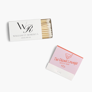 Qu’est-ce qui est à la fois pratique, mignon et plein de charme? Des allumettes personnalisées, bien sûr. Disponibles au choix en boîte ou en carton, les allumettes personnalisées font de jolis cadeaux pour vos célébrations les plus mémorables. Ajoutez le monogramme de votre mariage pour créer de jolies boîtes d’allumettes de mariage ou une phrase impertinente qui permettra à vos amies d’enterrement de vie de jeune fille de se souvenir de la soirée.