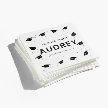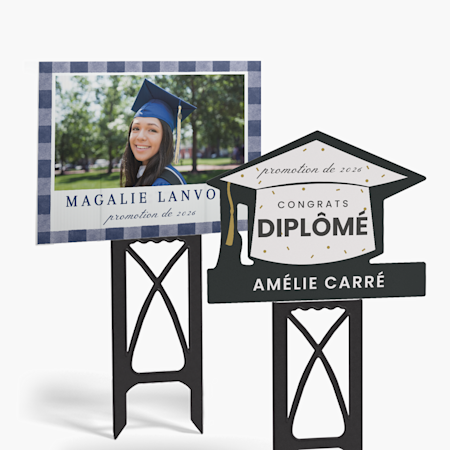 Fait amusant : ce n’est pas de la vantardise quand c’est mérité. Offrez à vos finissants les lauriers qu’ils méritent avec des articles de papeterie, des pancartes et des essentiels de fête de remise de diplôme personnalisés, à des prix qui vous mériteraient un diplôme (en économies, évidemment). Nos graphismes amusants et personnalisés rendent cette étape spéciale encore plus spéciale, en créant un look uniforme et en faisant de votre diplômé une vedette. Ajoutez simplement son nom, sa photo ou l’année du diplôme à tout le matériel, des pancartes d’extérieur aux fournitures de fête de remise de diplôme, comme les serviettes de table et les sous-verre en carton. Vous pouvez même imprimer le sourire de votre diplômé sur une banderole ou des ballons de remise de diplôme personnalisés (ça, c’est une planification hors pair!). Une fois l’événement terminé, revivez les moments heureux avec des souvenirs photo, comme des impressions encadrées et des blocs photo plexi. Ah, et n’oubliez pas de demander à votre finissant de faire un suivi grâce aux cartes de remerciement pour les invités.