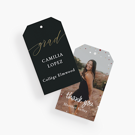 La papeterie de remise de diplôme inclut également les cartes de remerciement, que nous recommandons fortement d’envoyer à toutes les personnes qui assistent à la fête ou offrent des cadeaux. (Conseil de pro : Demandez à vos jeunes diplômés d’envoyer eux-mêmes les cartes de remerciement pour les responsabiliser.)