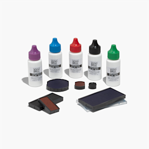 Optimisez votre timbre personnalisé avec des tampons encreurs et des flacons d’encre.