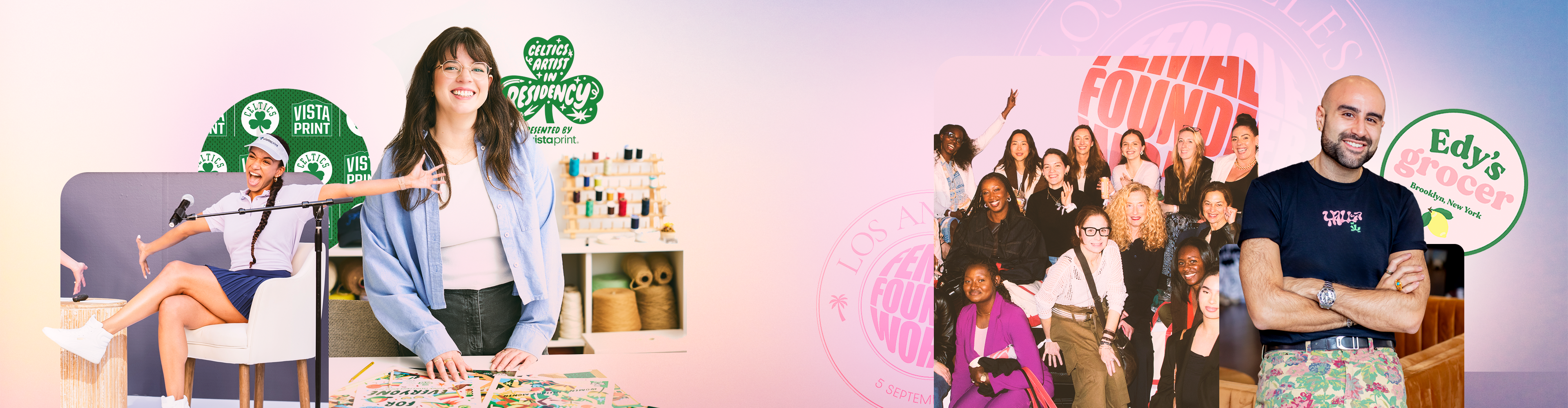 Nous accordons des subventions et des avoir à utiliser sur les produits VistaPrint aux petites entreprises dans le cadre de programmes tels que le Power Forward Small Business Grant et le Content Camp.