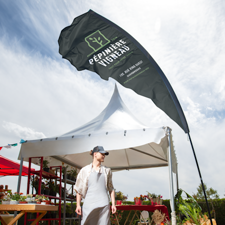 Lorsque vous commencerez à personnaliser vos produits d’affichage extérieur, VistaPrint sera à vos côtés. Vous pourrez utiliser l’un des modèles conçus par nos graphistes en y ajoutant votre logo ou les éléments de votre marque, ou téléverser votre propre graphisme afin que nous l’imprimions pour vous. Quel que soit votre choix, nous nous occuperons de vos produits d’affichage extérieur avec le plus grand soin. Nous imprimerons des articles éclatants et durables qui amélioreront votre marketing de rue ou vos campagnes publicitaires à l’occasion d’événements ou de marchés de producteurs en plein air. Et si vous avez besoin d’aide, ou si vous avez des questions en cours de route, nous sommes à votre service.