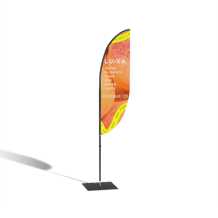 Un élément visuel attrayant. Selon vos besoins et l’emplacement de votre kiosque, vous pouvez opter pour un stand parapluie, une grande banderole en vinyle, une banderole rétractable ou un drapeau. Choisissez un produit imposant et spectaculaire, qui se démarque dans les lieux achalandés. Vous pouvez utiliser plusieurs produits pour augmenter vos chances de vous faire remarquer.