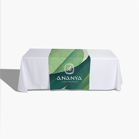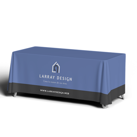 Une nappe ou un chemin de table professionnel. Une fois que vous avez attiré l’attention d’un visiteur, la configuration de la table est la clé. Quand vous personnalisez une nappe ou un chemin de table afin d’y inclure le nom de votre entreprise, votre logo et l’URL de votre site web, vous transformez une simple table pliante en présentation crédible de votre expertise professionnelle.