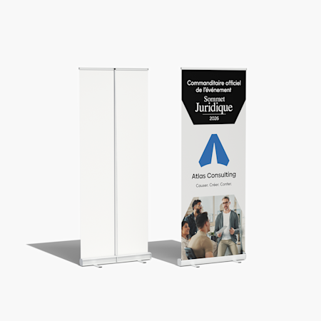 Pour choisir entre une banderole rétractable et une banderole en vinyle pour un salon professionnel, nous vous recommandons de réfléchir à vos besoins et à l’emplacement de la banderole. Si vous souhaitez accrocher quelque chose derrière votre table pour créer une toile de fond, choisissez l’un de nos grands formats de banderole en vinyle (ou un stand parapluie, qui a l’avantage de tenir debout seul, sans corde ni attache autobloquante). Si vous avez déjà une toile de fond personnalisée, une banderole rétractable est un excellent moyen d’attirer l’attention des passants. Vous pouvez l’installer juste devant votre kiosque. De plus, les banderoles rétractables sont faciles à transporter et à monter. Chacune est livrée dans son propre étui. Vous pouvez installer la banderole et son support préassemblé en 90 secondes environ.