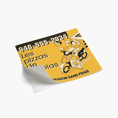 Nos autocollants amovibles personnalisés se repositionnent facilement, mais nous vous conseillons d’éviter de les manipuler trop souvent. Des débris et de la poussière risquent de s’accumuler sur le côté adhésif de l’autocollant, ce qui peut entraîner la formation de bulles.