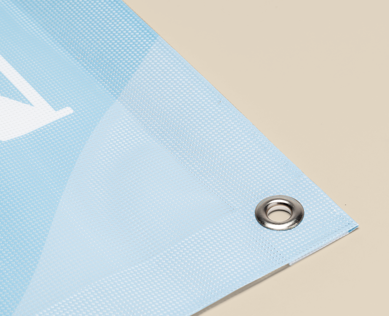 Des œillets métalliques de 0,5 pouce sont ajoutés à 2 pieds de distance en haut et en bas de toutes nos banderoles microperforées et bâches textiles. Nous pouvons également en placer sur les banderoles en vinyle et les banderoles fanions, si vous le souhaitez.