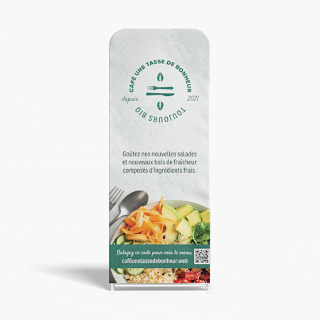 Les banderoles sur pied sont également faciles à installer, ce qui est un souci en moins dans la gestion de votre petite entreprise. Elles peuvent également être réutilisées plusieurs fois lors d’événements différents et peuvent être déplacées facilement d’un endroit à l'autre. Leur portabilité vous offre de multiples occasions de promouvoir votre marque et votre message, que ce soit dans le cadre d’une foire locale, d’une boutique éphémère ou d’une promotion en magasin. N’oubliez pas de personnaliser votre banderole sur pied avec votre logo et le nom de votre entreprise. Vous avez également la possibilité d’ajouter des images, du texte et plus. Et si vous avez besoin d’aide en cours de route, VistaPrint est prêt à vous fournir des conseils avisés et des idées.