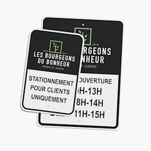 Pour créer le panneau de stationnement idéal, rien de plus simple. Faites votre choix parmi des modèles personnalisables en optant pour la taille, le matériau et les options de création graphique qui correspondent à votre image de marque ou répondent à vos besoins spécifiques. Une fois finalisés, nous vous livrerons vos panneaux prêts à être installés. Restez confiant en sachant que vous choisissez la qualité et la fiabilité à chaque commande.