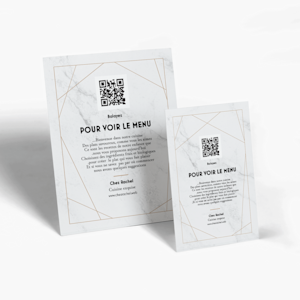 Créez des pancartes de table personnalisées qui reflètent parfaitement votre marque. Grâce à la diversité de nos modèles et à nos outils de création graphique conviviaux, chaque détail est personnalisable, de la police de caractères à la couleur. Vous pouvez aussi téléverser votre propre graphisme pour obtenir une pancarte vraiment unique. Imprimées sur un papier cartonné à la fois résistant et d’excellente qualité, ces enseignes légères sont faciles à transporter et à installer partout, du kiosque d’un salon professionnel au comptoir d’un magasin.