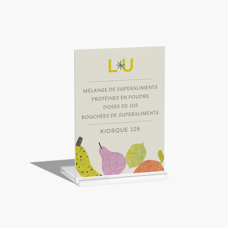Oui, la plupart de nos produits d’affichage sont personnalisables dans une certaine mesure. Ces personnalisations peuvent inclure le choix d’un type de matériau (avec impression recto verso ou d’un seul côté), une couleur de base, un graphisme, la disposition ou le contenu du produit. Les accessoires ne peuvent pas être personnalisés.