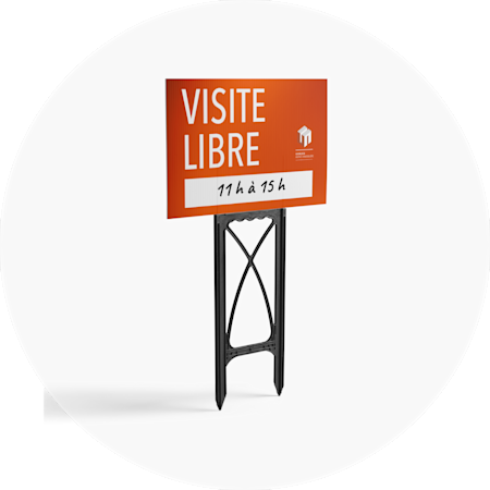 Si vous voulez annoncer une visite libre, nous vous recommandons les pancartes d’extérieur ou les panneaux Signicade, qui vous assureront une bonne visibilité auprès des passants. Les prospectus, les livrets et les dépliants permettent de donner plus de détails sur votre agence pendant que vous discutez avec des clients potentiels. Vous pouvez également vous faire connaître grâce à des autocollants pour voiture.