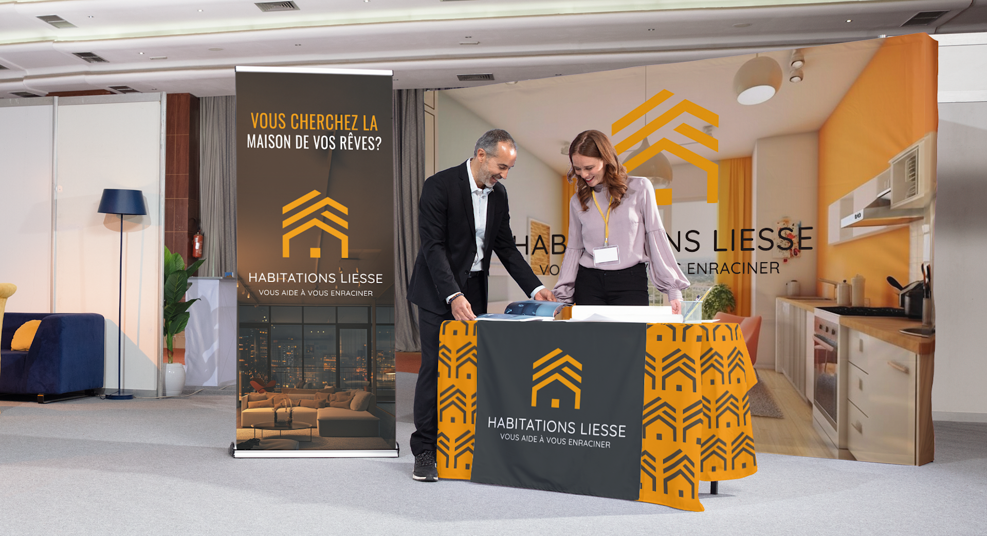 Créez un kiosque de salon professionnel ou d’événement qui met votre entreprise à l’honneur.