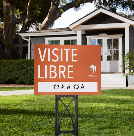 Vous avez travaillé fort pour monter votre agence immobilière. VistaPrint peut vous aider à attirer de nouveaux clients et à vous faire connaître dans votre communauté, grâce à sa sélection de produits d’affichage spécialement conçus pour l’immobilier. Avec nos produits personnalisables, créez des pancartes d’extérieur « À vendre » aussi impressionnantes que colorées, ainsi que des banderoles « Visite libre » ou des ajouts de pancarte indiquant « Vendu », puis placez-les sur un trottoir, une pelouse ou à proximité de routes fréquentées. Vous préférez un support publicitaire mobile? Habillez votre voiture avec des aimants et des autocollants amovibles pour vitre arborant votre logo et vos coordonnées.