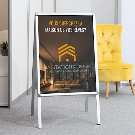 Nos pancartes immobilières sont prêtes à l’emploi et faciles à installer. Les banderoles rétractables sont préassemblées, tandis que les pancartes d’extérieur et les panneaux Signicade s’installent et se déplacent rapidement.