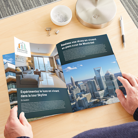 Quels que soient les besoins de votre agence immobilière, il est facile de téléverser votre propre graphisme ou d’en sélectionner un parmi les centaines de modèles professionnels que nous proposons, puis de créer des supports marketing entièrement personnalisés pour votre activité immobilière. Et si vous avez besoin d’aide au cours du processus, vous pouvez toujours contacter nos graphistes professionnels. Ils sont prêts à donner vie à vos idées.