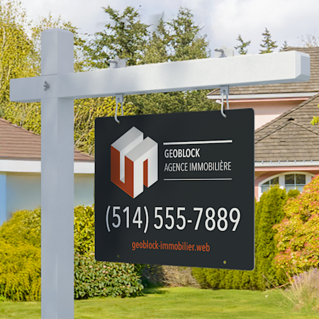 Nous proposons 5 tailles de pancartes d’extérieur. Nous vous recommandons de choisir le format standard de 18 x 24 po que la plupart des agents utilisent pour les ventes immobilières.