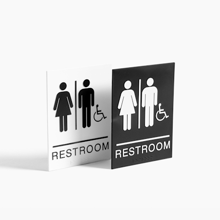 Nous disposons de pancartes pour bureau et portes, ainsi que pour indiquer les toilettes. Nous proposons également des enseignes directionnelles.