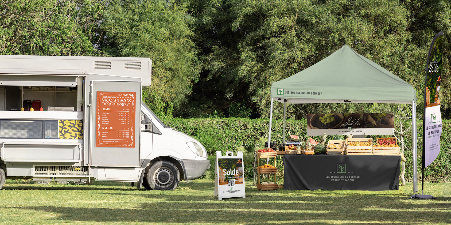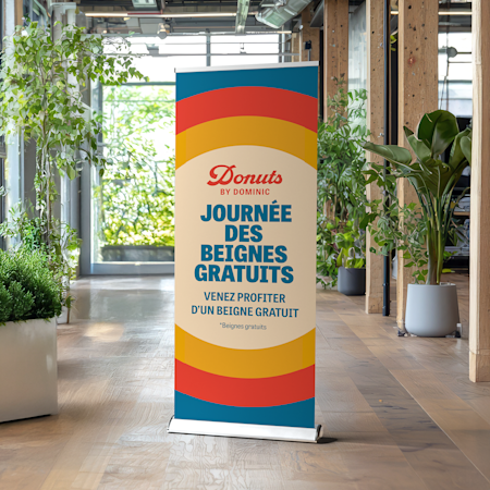 - Promotions extérieures : banderoles en vinyle ou pancartes rigides qui résistent aux intempéries