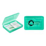 Affrontez les petites urgences du quotidien en gardant toujours notre trousse de secours portative et personnalisée à portée de main. Elle réunit dans une boîte en plastique réutilisable des pansements essentiels, des lingettes antiseptiques et un analgésique.