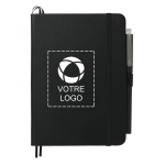 Découvrez un ensemble carnet et stylo polyvalent conçu pour répondre à vos besoins de prise de notes et d’organisation. Parfait pour noter des idées quand elles viennent, il contient des pages de papier pointillé, des rubans marque-page et une fermeture élastique pratique pour un rangement sécurisé. Ils sont faciles à personnaliser : ajoutez votre logo, votre message ou des informations dans notre studio intuitif. Besoin d’un coup de main? Nos graphistes professionnels sont là pour vous aider à donner vie à vos idées.