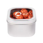 Comblez votre envie de sucré avec cette boîte métallique attrayante remplie de ballons de basketball en chocolat. Le couvercle transparent vous permet d'apercevoir les délicieuses friandises qui se trouvent à l'intérieur.