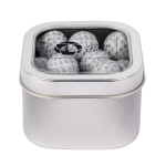 Faites plaisir aux amateurs de golf avec une élégante boîte métallique de balles de golf en chocolat. La partie supérieure transparente permet d'admirer les délicieuses friandises qui se trouvent à l'intérieur.