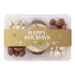 Faites plaisir à vos clients avec une boîte à pêche de chocolats gourmets qui élève l'art d'offrir à un niveau supérieur. Surprenez vos précieux clients avec six compartiments de délices comprenant des caramels au sel de mer, des amandes couchées de chocolat et des raisins couchés de yaourt. Cet article est facile à personnaliser : ajoutez votre logo, votre message ou des informations dans notre studio de création graphique intuitif. Besoin d’un coup de main? Nos graphistes professionnels sont là pour vous aider à donner vie à vos idées.