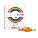 Adoucissez votre message d'inclusion avec cette boîte de bonbons colorée arborant le graphisme Love Is Love, remplie de délicieux oursons gélifiés. Partagez ces friandises lors des événements de la Fierté, des célébrations au bureau ou comme cadeau attentionné pour montrer votre soutien à l’égalité et à l’amour. Cet article est facile à personnaliser : ajoutez votre logo, votre message ou des informations dans notre studio de création graphique intuitif. Besoin d’un coup de main? Nos graphistes professionnels sont là pour vous aider à donner vie à vos idées.
