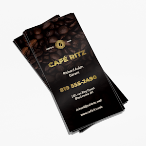 Plus qu’un moyen d’imprimer votre message dans tous les esprits, l’effet métallisé permet aussi de souligner des informations importantes, des dates et plus. (Nous assortirons l’effet métallisé à votre graphisme d’origine, de manière à obtenir un résultat chic, sans contraste trop marqué.) Que vous utilisiez l’un de nos modèles prêts à l’emploi ou que vous ajoutiez ce fini spécial à votre propre graphisme, le choix des éléments sur lesquels vous souhaitez attirer les regards vous appartient.
