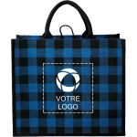 Si vous êtes à la recherche d'un cadeau publicitaire capable d'attirer l’attention sur votre marque, ce sac fourre-tout en toile de jute à motif tartan imprimé est fait pour vous. Il est pratique à utiliser à tout moment lorsque vous devez faire des emplettes. De plus, avec son design à carreaux tendance et son compartiment principal ouvert, il est idéal pour ranger votre portefeuille, vos clés, votre carte de crédit et bien d'autres choses encore. Il vous suffit d'ajouter votre logo dans notre studio de création en ligne pour que votre marque soit repérable à des kilomètres à la ronde. Et si vous avez besoin d’aide, nos graphistes professionnels sont toujours disponibles pour concrétiser vos idées.