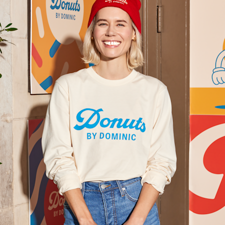 3. Ajoutez le graphisme de votre t-shirt Une fois que vous avez sélectionné votre t-shirt préféré et la quantité que vous souhaitez commander, passez à l’étape de création de votre propre t-shirt en choisissant un graphisme dans notre galerie (parmi notre vaste choix de secteurs et de styles) ou téléversez votre propre image ou logo. Pour certains de nos t-shirts personnalisés, l’impression au dos est également possible.