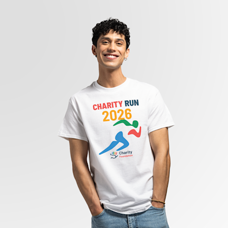 3. Ajoutez le graphisme de votre t-shirt Une fois que vous avez sélectionné votre t-shirt préféré et la quantité que vous souhaitez commander, passez à l’étape de création de votre propre t-shirt en choisissant un graphisme dans notre galerie (parmi notre vaste choix de secteurs et de styles) ou téléversez votre propre image ou logo. Pour certains de nos t-shirts personnalisés, l’impression au dos est également possible.