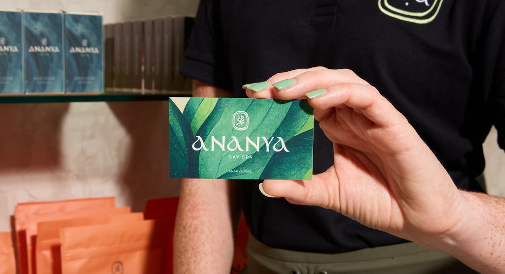 If you run a day spa, use your business card to give potential clients an idea of your spa’s vibe. Show that you use all-natural ingredients with a kraft paper card or reflect your luxurious brand identity with silver foil text.