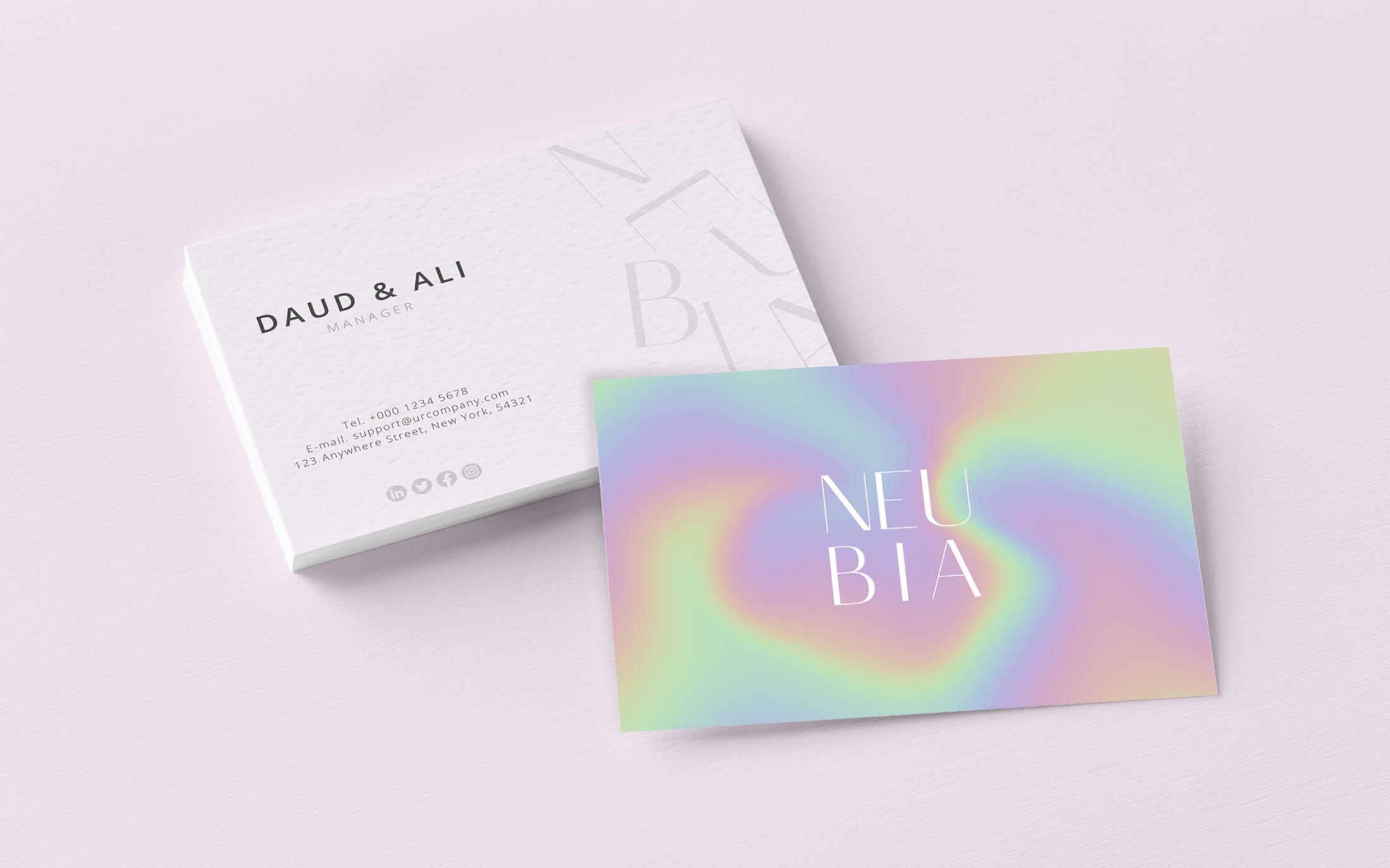 Nostalgia comes up a lot in design trend discussions, and 2024 business card trends are no exception. Millennial nostalgia, and the question of whether millennials are the last nostalgic generation (they aren’t), is one of the likely drivers behind our next trend – Iridescent business cards. Who could forget the rush of finding a holographic Pokemon card in a booster pack?