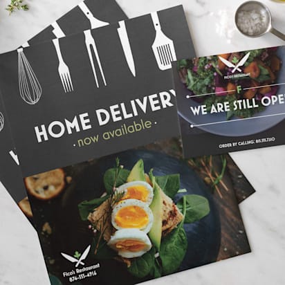 Don’t overlook the importance of traditional print marketing materials. Business cards, postcards, brochures and flyers are useful materials that can be used in a multitude of ways. Think: business cards that double as a rewards tracker or postcards that get packed with a personal note in shipped orders. Design these materials in your brand’s colours, add your logo and include any useful, relevant business information. (Like your operation hours and contact details!)