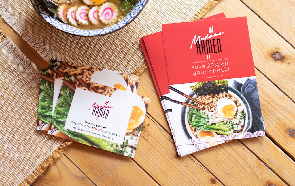 There’s also a lot to keep in mind when it comes to paper stock and thickness…and this comes back to your flyer’s primary purpose. Is your flyer doubling as a coupon? Consider printing it on thicker paper so customers are more likely to hang on to it. Do you want to be able to write on your flyer? Choose an uncoated paper stock that’s easy to write on. Are you planning to showcase some product photography or use a lot of bright colors? Go for a glossy finish when you get your flyers printed.[1] Need a little more durability? Cover stock is the way to go, especially for flyers that are posted outdoors.