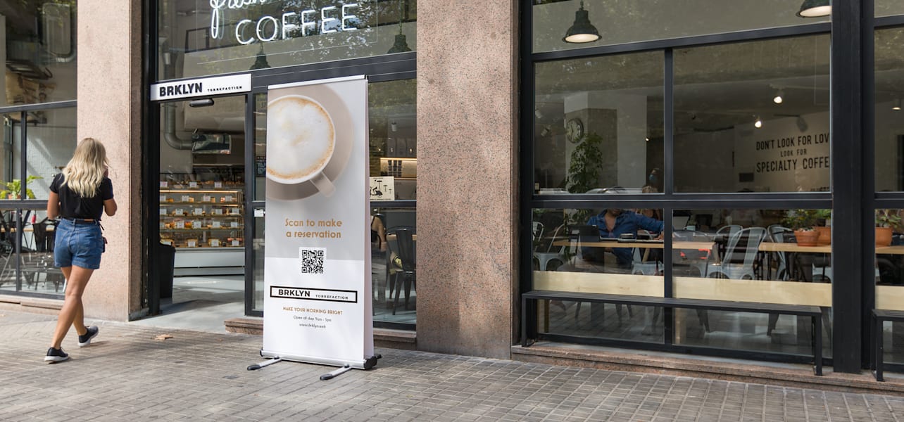 QR menus had a major moment when restaurants and cafes reopened. It’s an extremely low-cost option for restaurant owners, and it provides a safe, easy and touch-free option for diners. Plus, instead of printing new menus whenever you change your menu or update your pricing, business owners can update the PDF or web page the QR code links to. This makes it easier than ever to promote special offers, new menu items and limited-edition products. You can print out your QR menu code on a retractable banner or even on a sticker for easy scanning access.